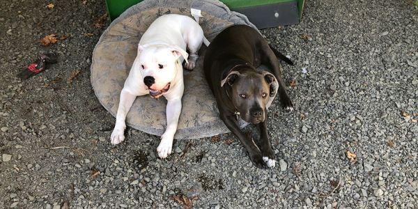I live with two wonderful dogs, Baloo and Bella. Baloo, an American Staffordshire Terrier, has a relaxed pace, is loyal and friendly, and is a loving cuddle bug who thrives on affection. Bella, an American Bulldog, is strong and independent, always eager to stay by my side. She enjoys playtime and cuddles, though she takes a little time to warm up to new people.